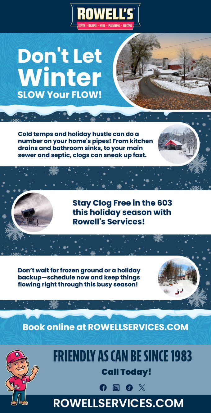 Stay Clog Free in the 603 this holiday season with Rowell's Services!